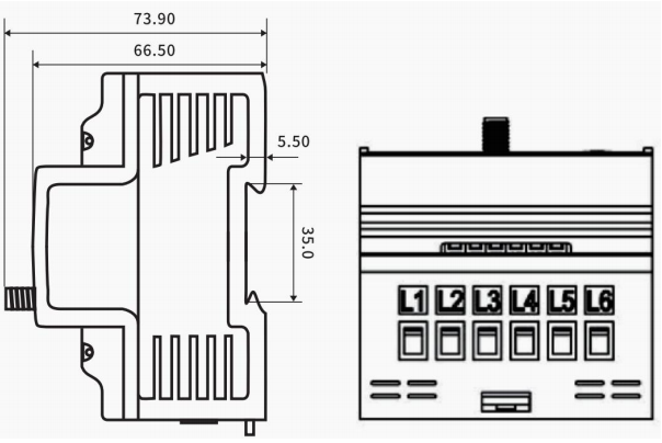 | 物理參數 | 尺寸 / 安裝方式 | 尺寸:102.4×72×66.5mm;安裝方式:導軌安裝 |